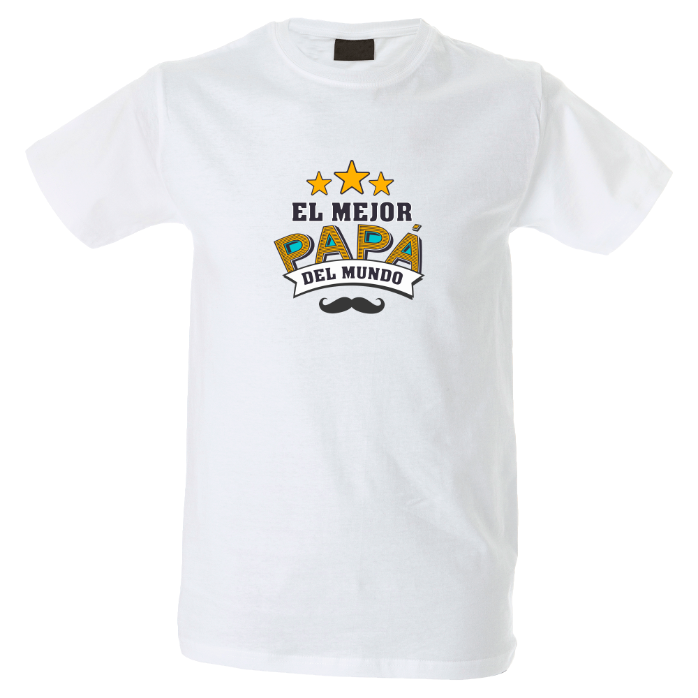 Camiseta hombre de cuello redondo con cinta de refuerzo en el cuello con diseño de mejor papá del mundo