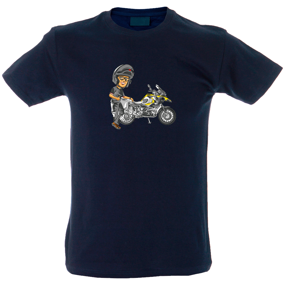 Camiseta hombre de cuello redondo con cinta de refuerzo en el cuello con diseño de kawasaki amarilla