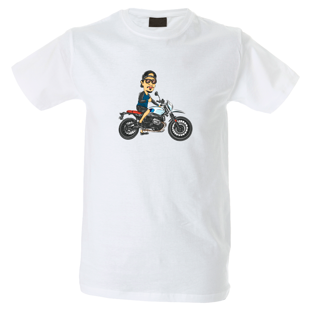 Camiseta hombre de cuello redondo con cinta de refuerzo en el cuello con diseño de modelo moto