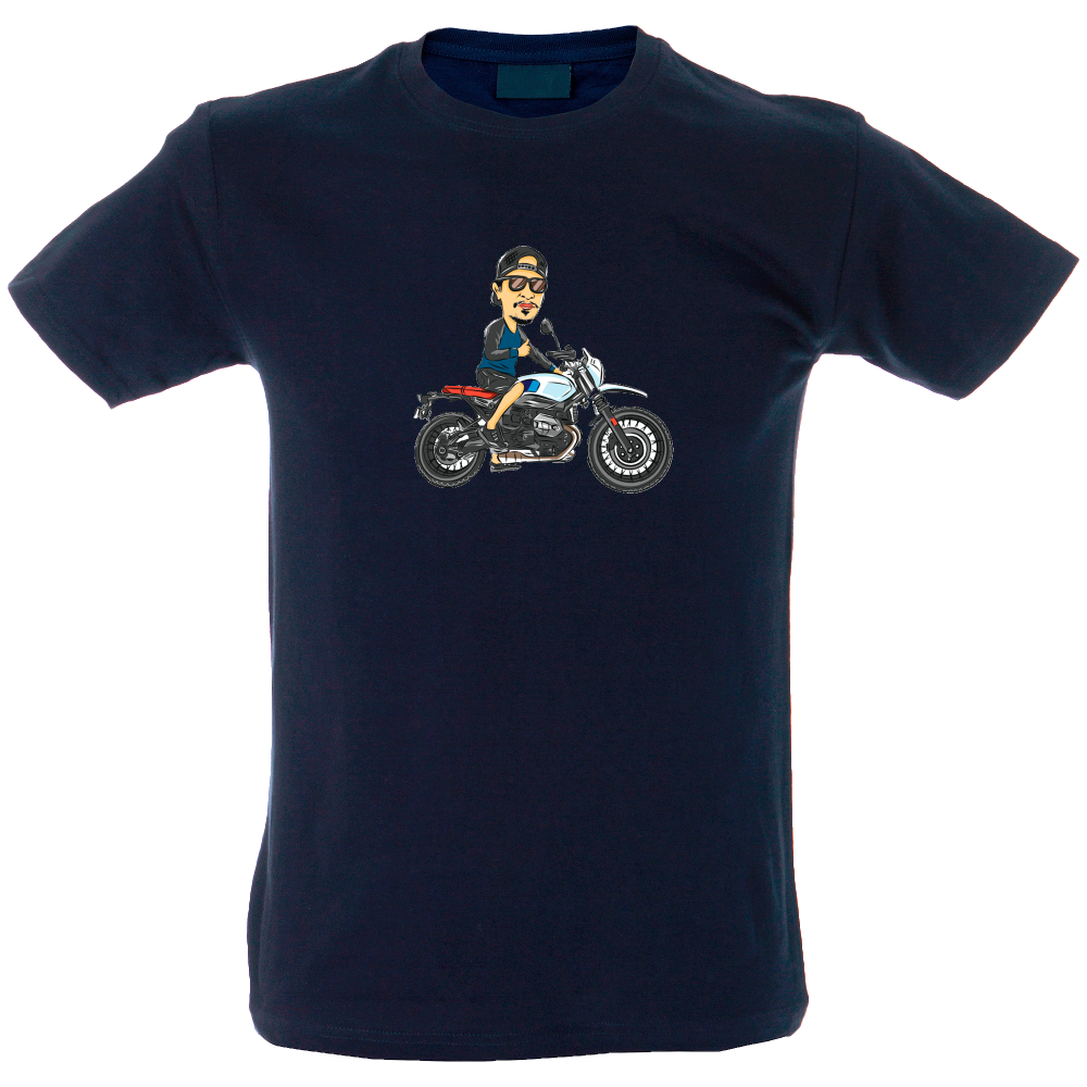 Camiseta hombre de cuello redondo con cinta de refuerzo en el cuello con diseño de modelo moto