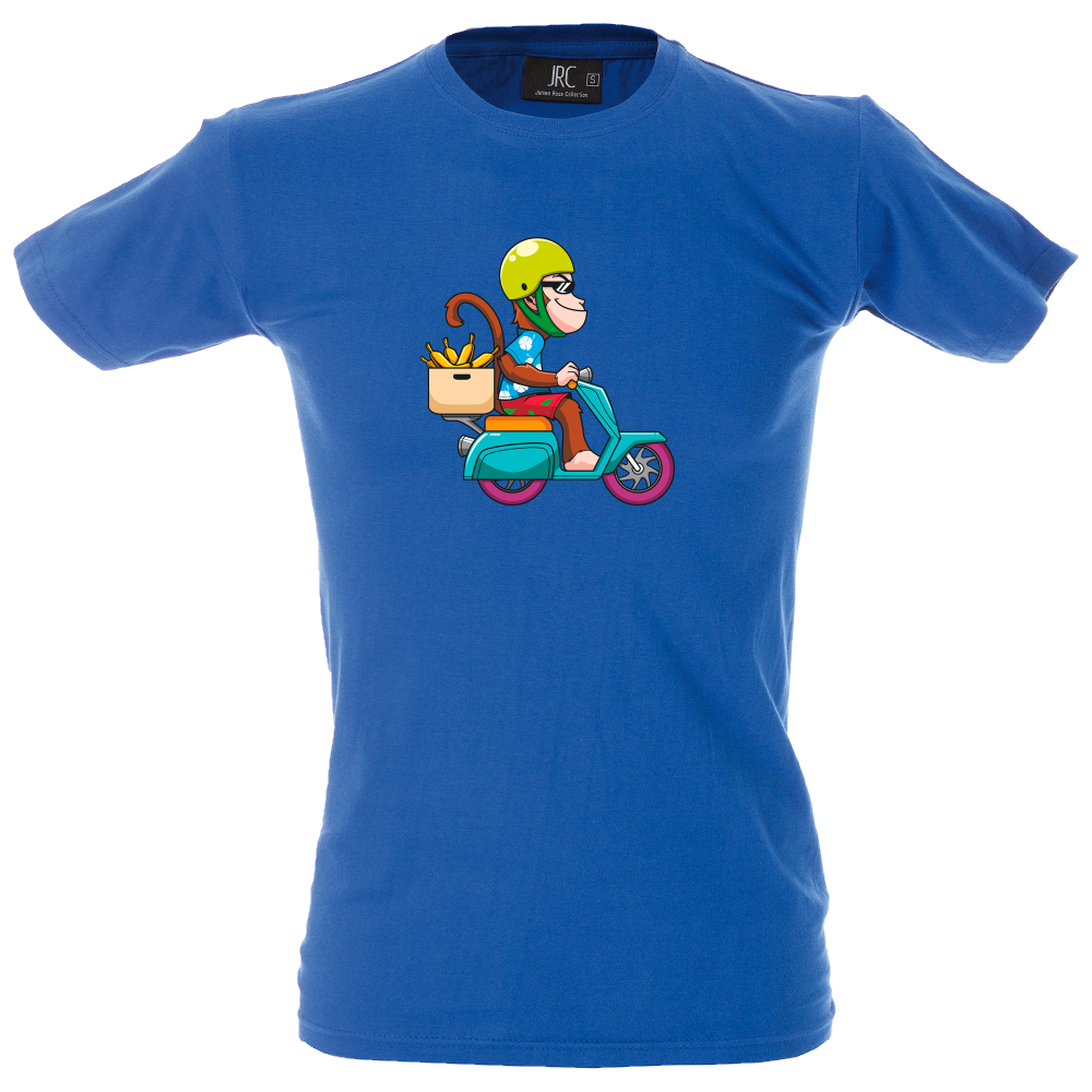 Camiseta hombre de cuello redondo con cinta de refuerzo en el cuello con diseño de mono moto