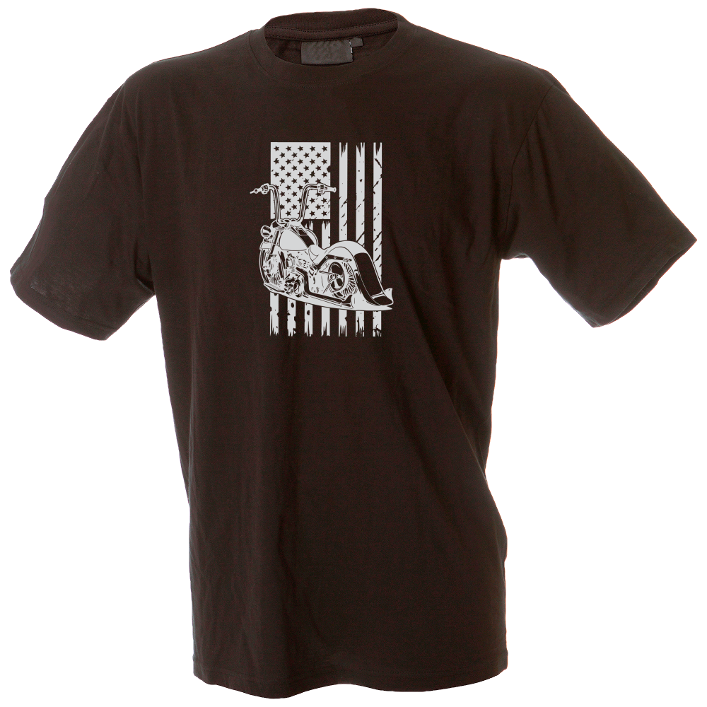 Camiseta hombre de cuello redondo con cinta de refuerzo en el cuello con diseño de moto chopper USA