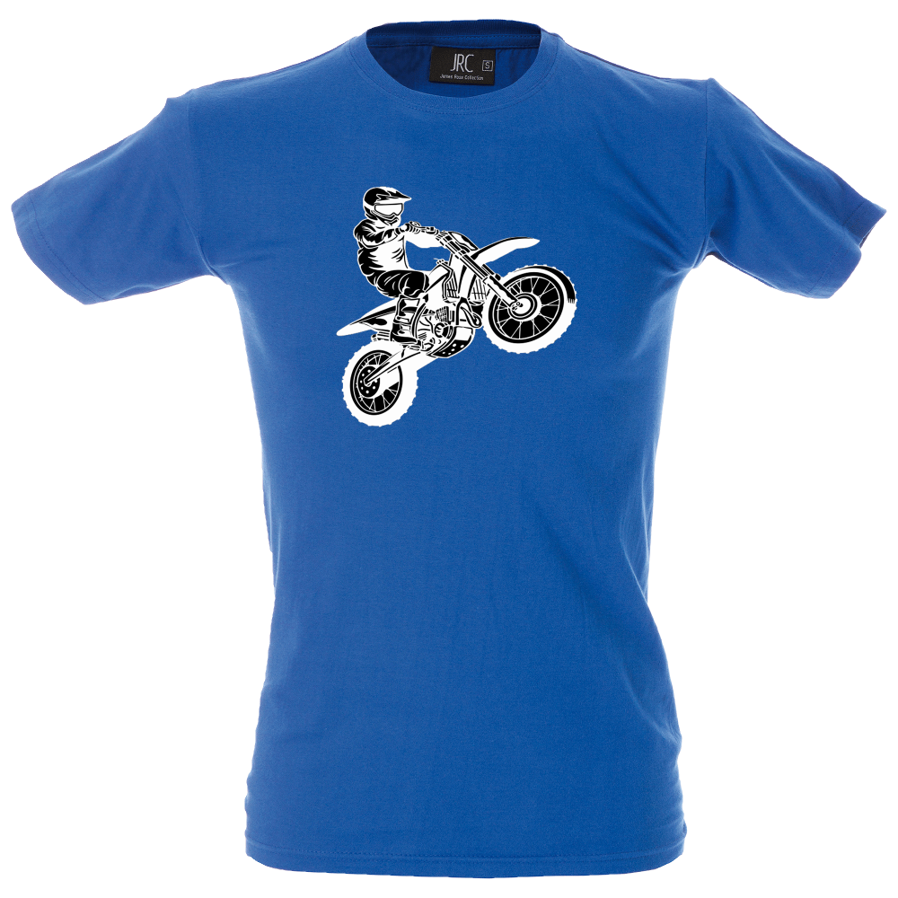 Camiseta hombre de cuello redondo con cinta de refuerzo en el cuello con diseño de moto cross