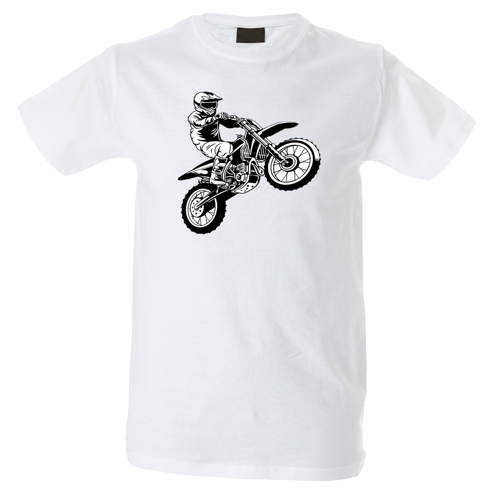 Camiseta hombre de cuello redondo con cinta de refuerzo en el cuello con diseño de moto cross