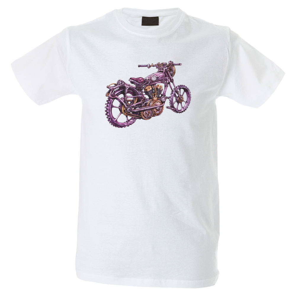 Camiseta hombre de cuello redondo con cinta de refuerzo en el cuello con diseño de moto retro