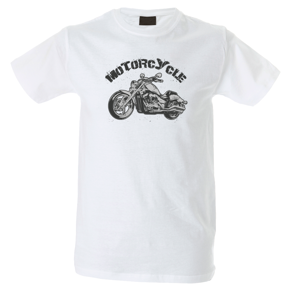 Camiseta hombre de cuello redondo con cinta de refuerzo en el cuello con diseño de motorcycle