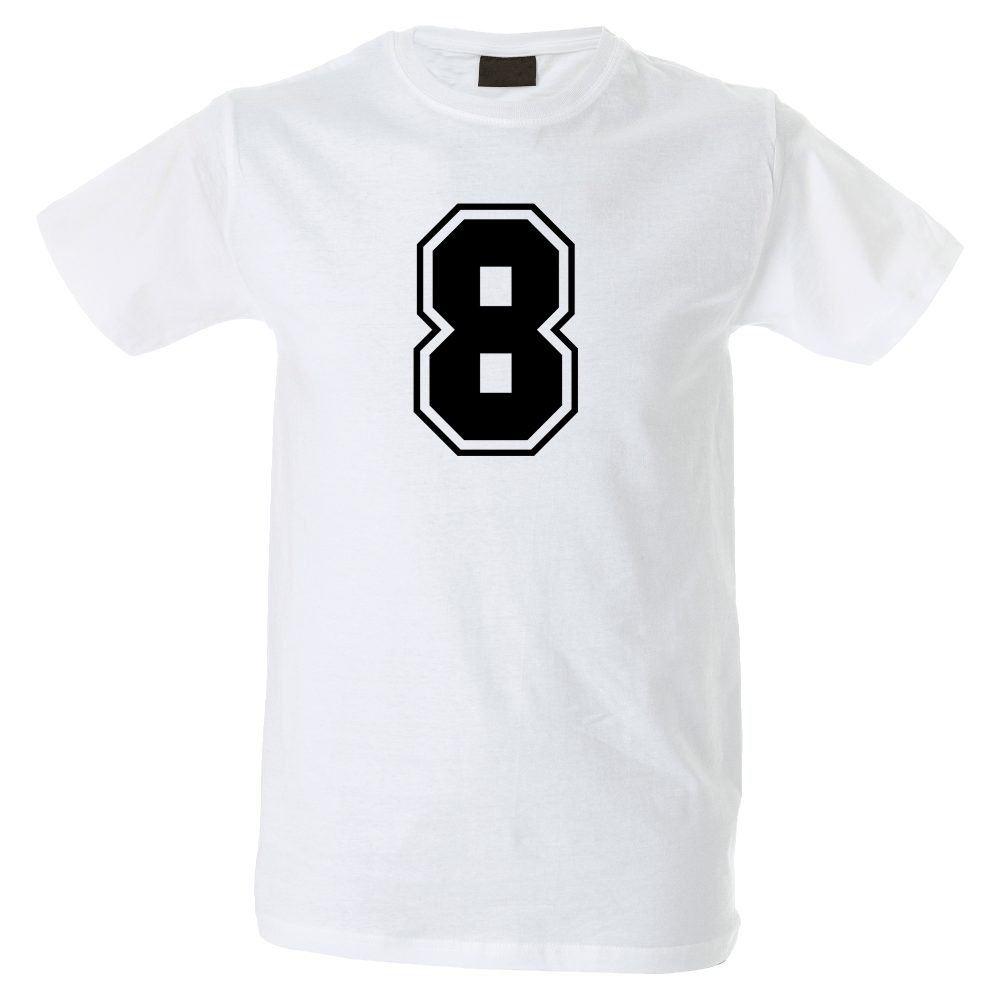 Camiseta hombre de cuello redondo con cinta de refuerzo en el cuello con diseño de número 8