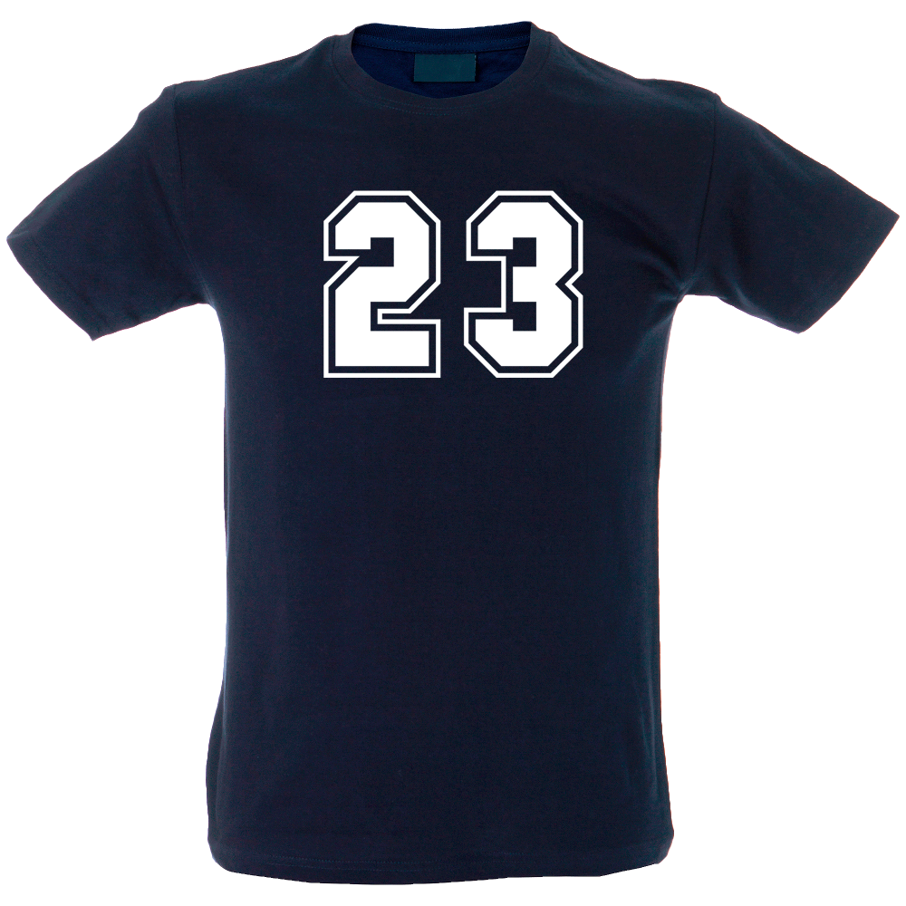 Camiseta hombre de cuello redondo con cinta de refuerzo en el cuello con diseño de número 23
