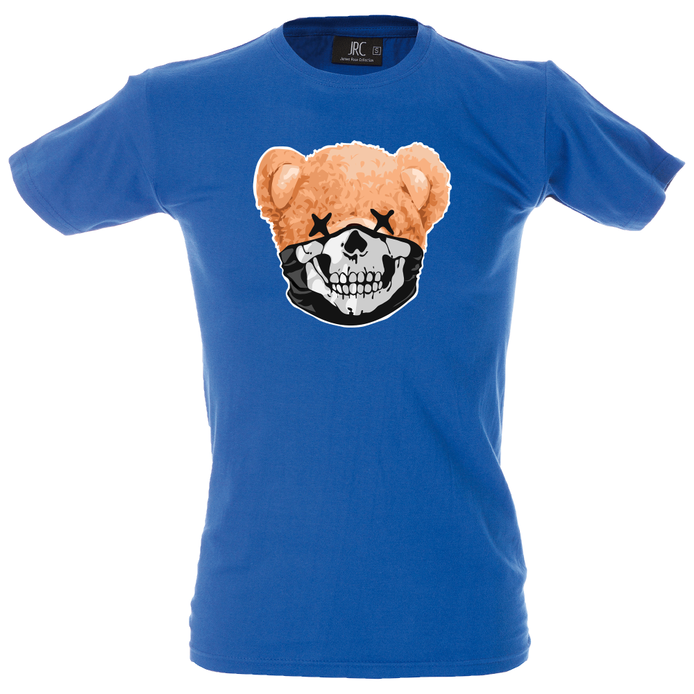 Camiseta hombre de cuello redondo con cinta de refuerzo en el cuello con diseño de oso cubrebocas calavera