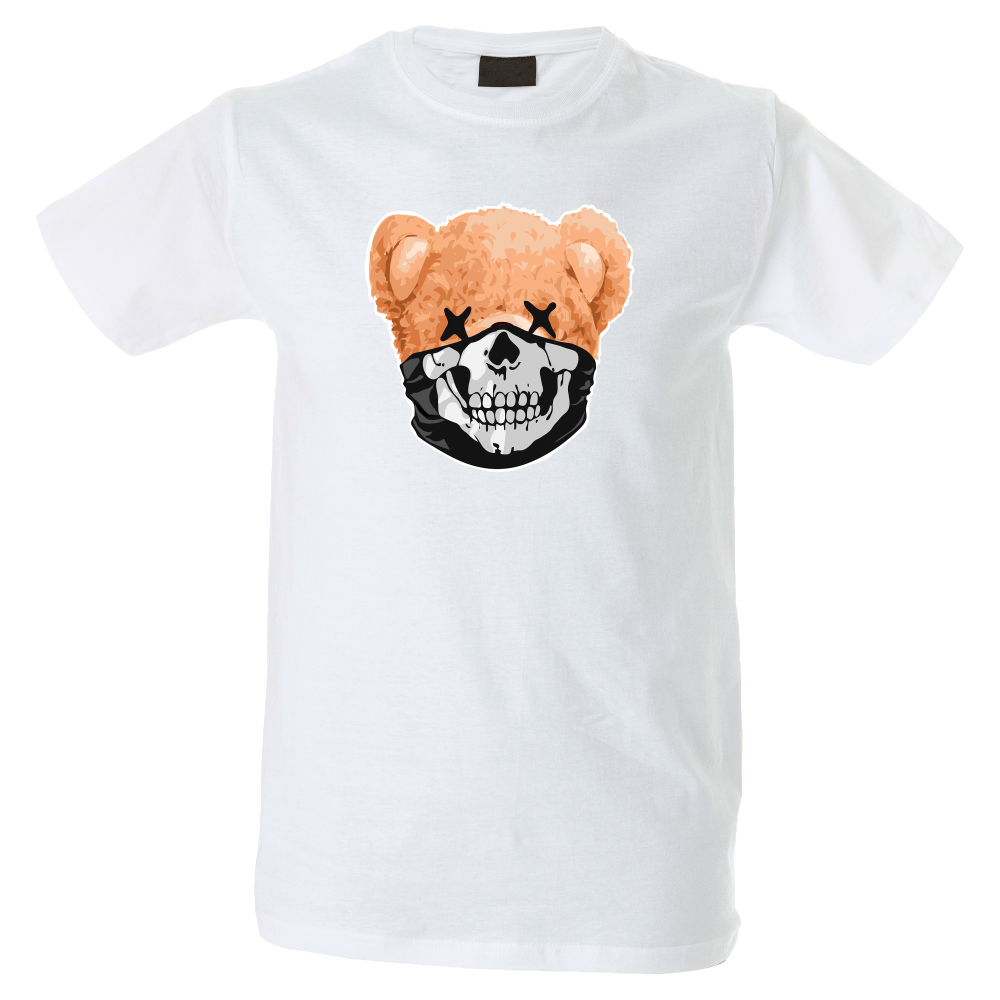 Camiseta hombre de cuello redondo con cinta de refuerzo en el cuello con diseño de oso cubrebocas calavera