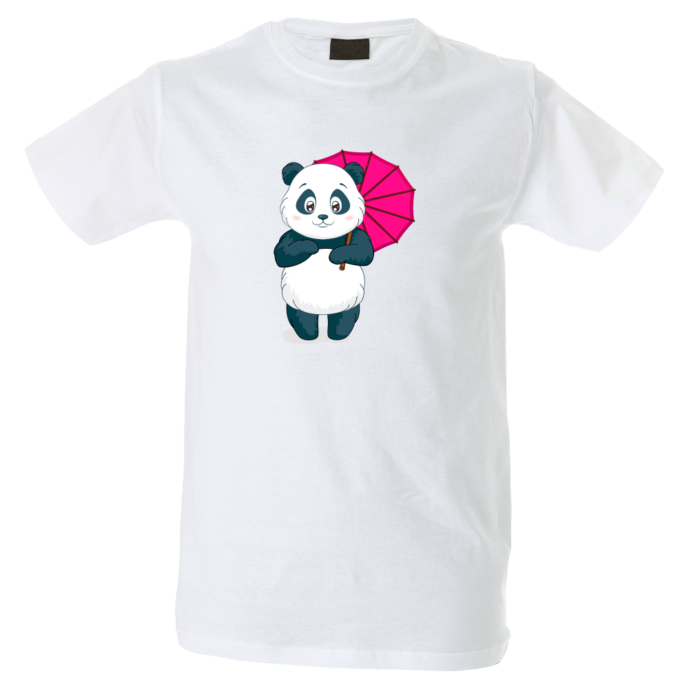 Camiseta hombre de cuello redondo con cinta de refuerzo en el cuello con diseño de panda paragua