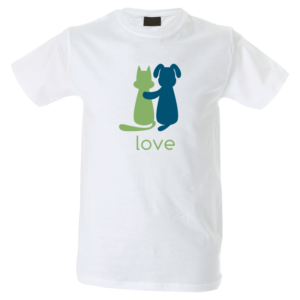 Camiseta hombre de cuello redondo con cinta de refuerzo en el cuello con diseño de perro gato enamorados