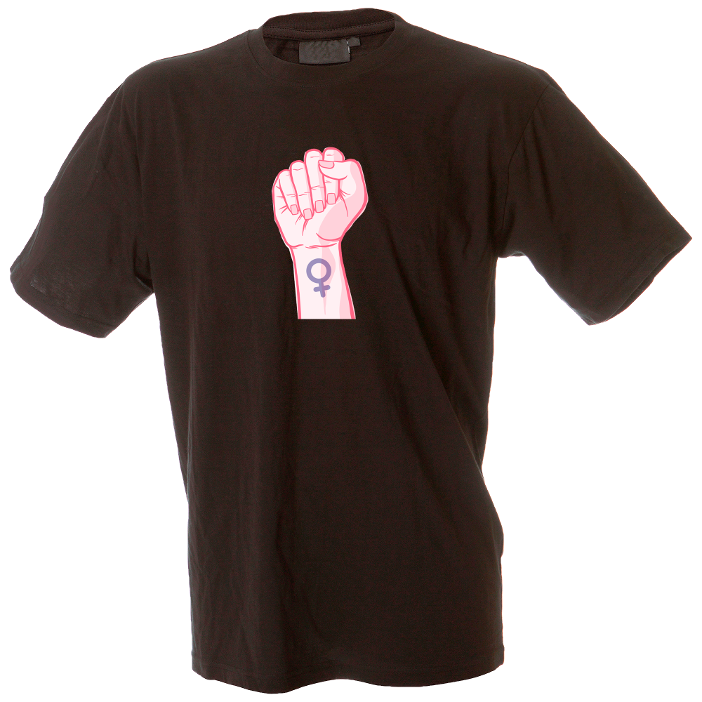 Camiseta hombre de cuello redondo con cinta de refuerzo en el cuello con diseño de puño feminista