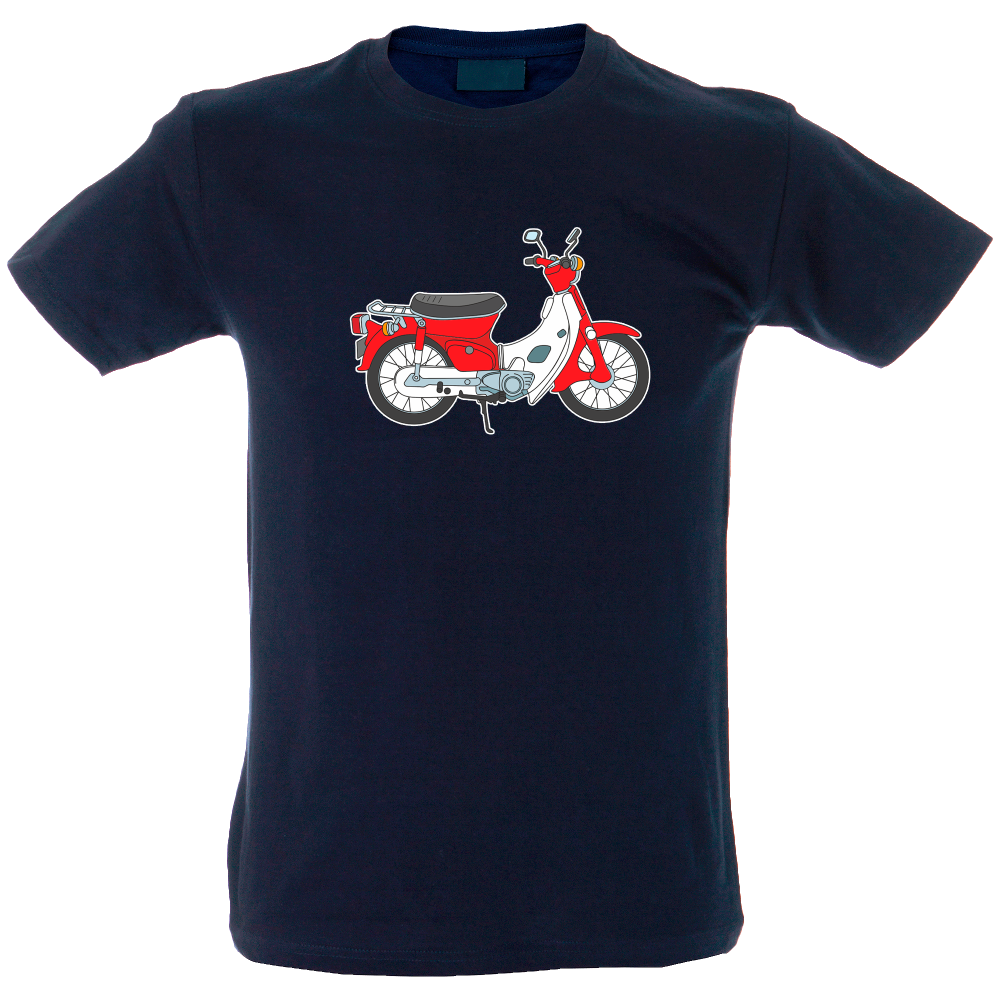 Camiseta hombre de cuello redondo con cinta de refuerzo en el cuello con diseño de vespa roja