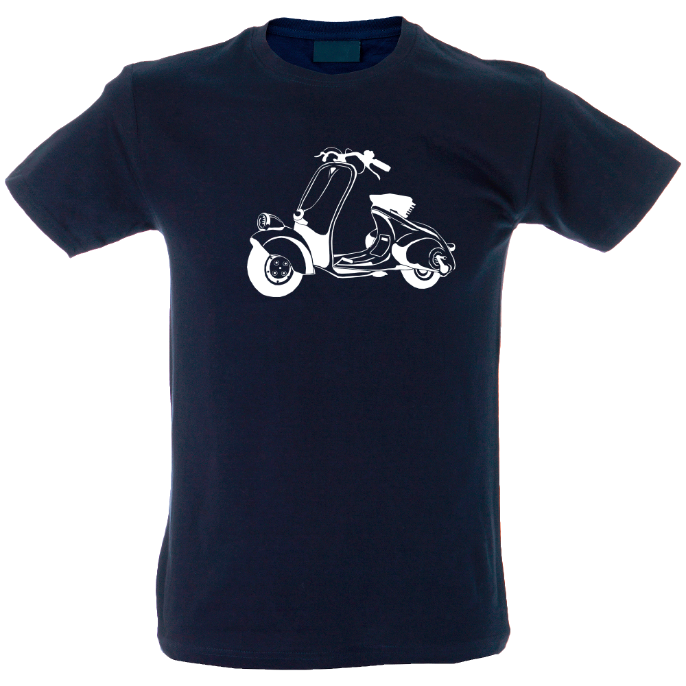 Camiseta hombre de cuello redondo con cinta de refuerzo en el cuello con diseño de vespa sillín bajo