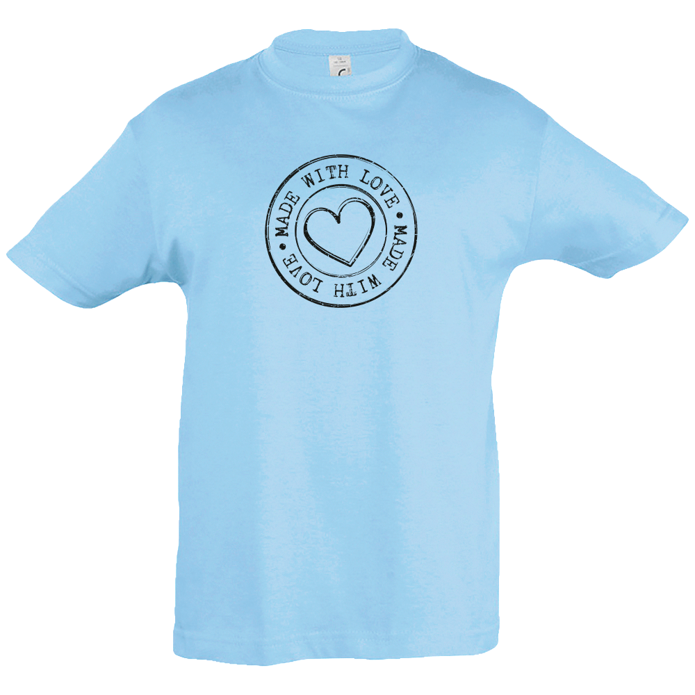 Camiseta de manga corta para niño/a con cuello redondo reforzado con diseño de made with love.