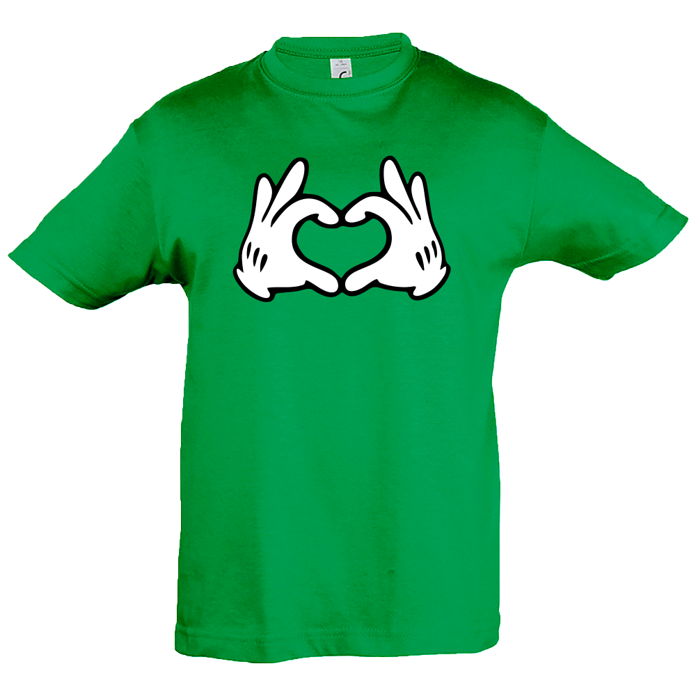 Camiseta de manga corta para niño/a con cuello redondo reforzado con diseño de manos mikey.