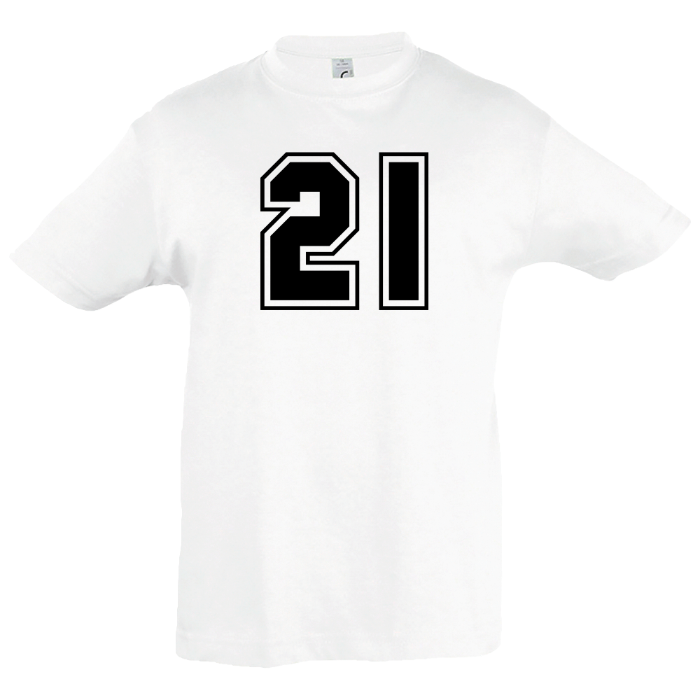 Camiseta de manga corta para niño/a con cuello redondo reforzado con diseño de número 21.