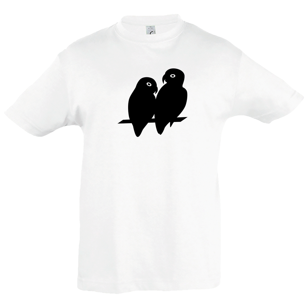 Camiseta de manga corta para niño/a con cuello redondo reforzado con diseño de pareja aves.