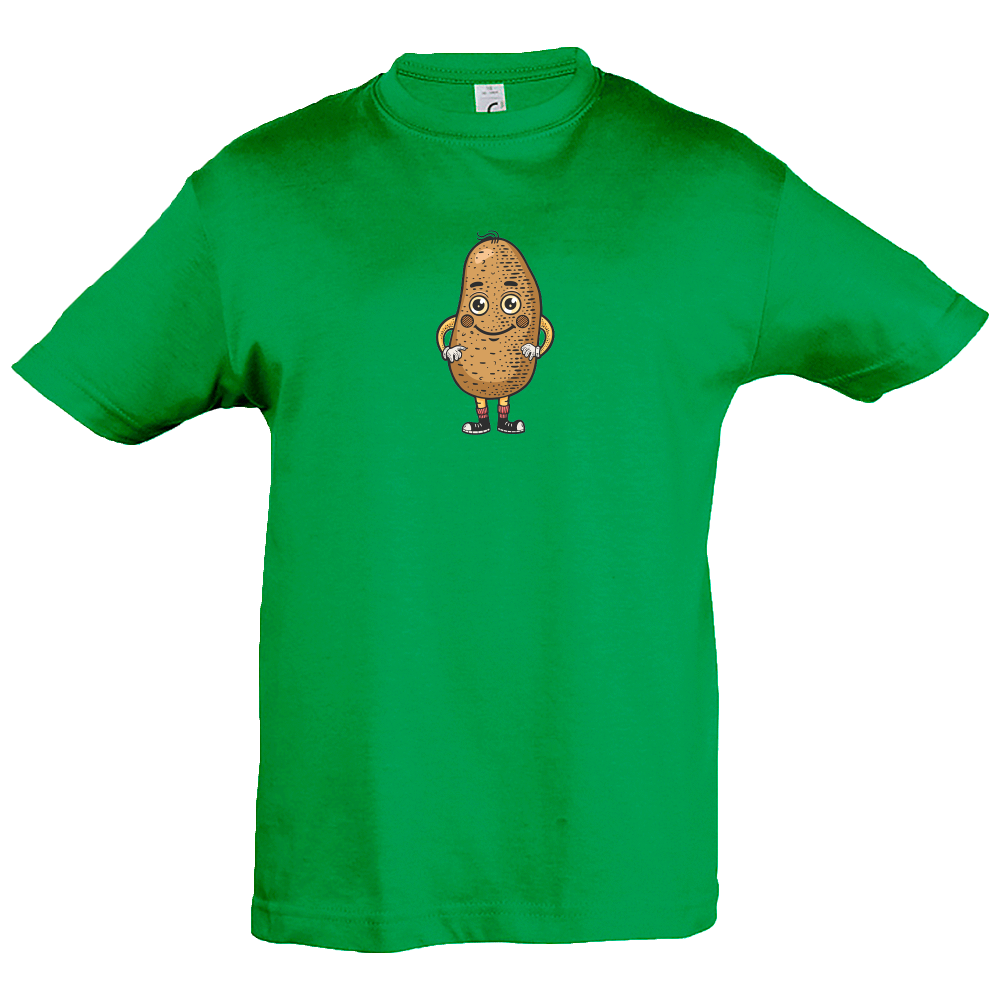 Camiseta de manga corta para niño/a con cuello redondo reforzado con diseño de patata sonriente.