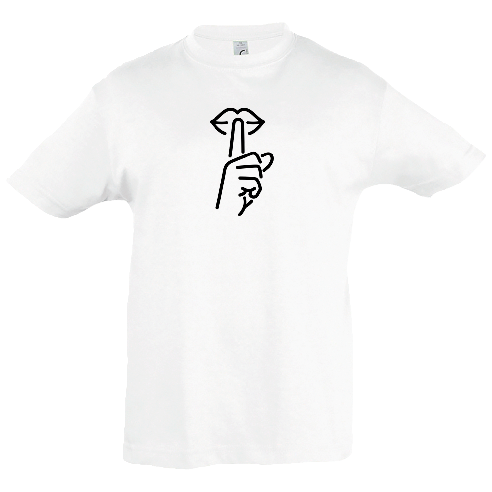 Camiseta de manga corta para niño/a con cuello redondo reforzado con diseño de silencio.