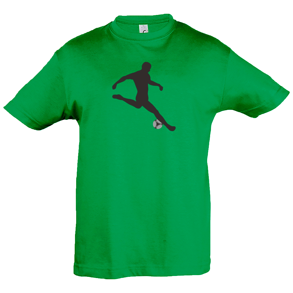 Camiseta de manga corta para niño/a con cuello redondo reforzado con diseño de silueta chute.