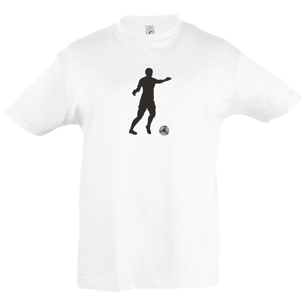 Camiseta de manga corta para niño/a con cuello redondo reforzado con diseño de silueta jugador.