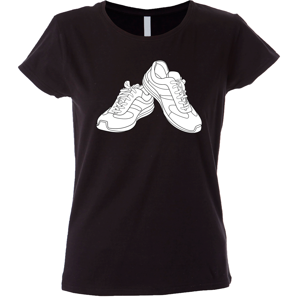 Camiseta mujer de manga corta con cinta de refuerzo en el cuello con diseño de bambas