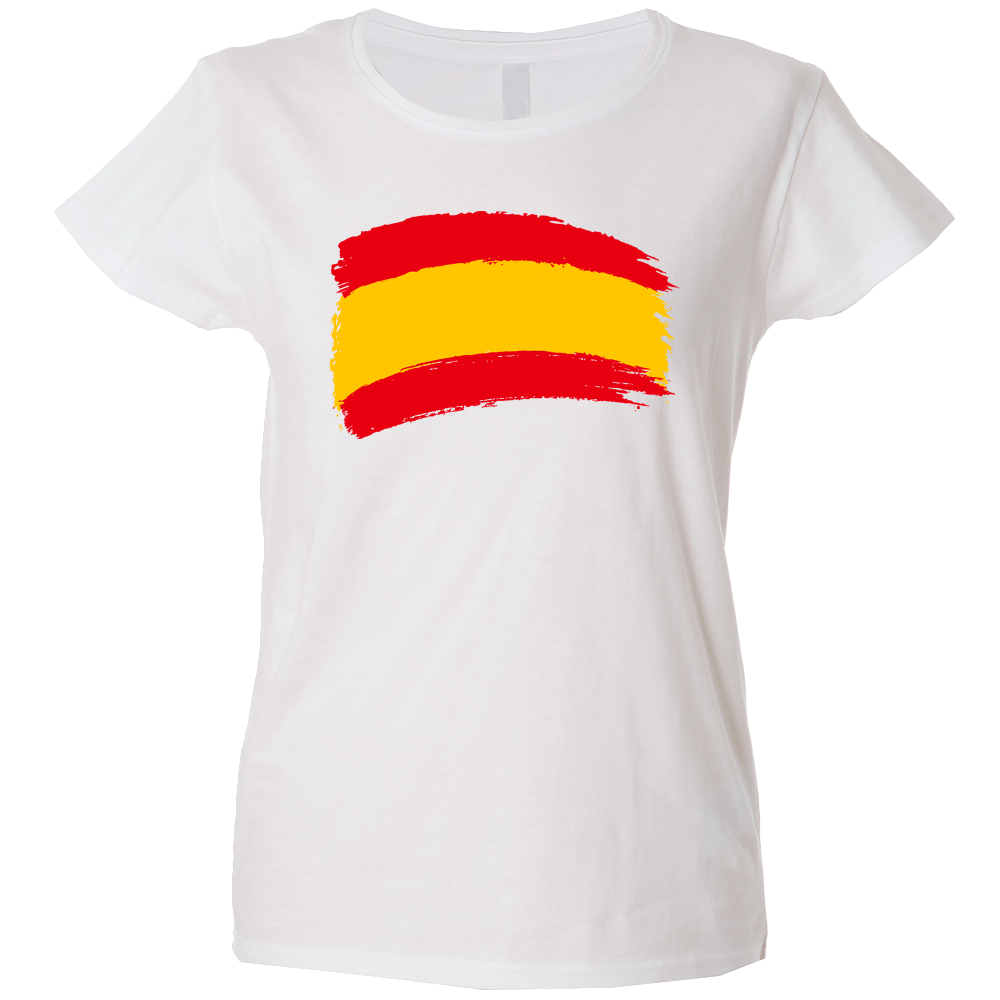 Camiseta mujer de manga corta con cinta de refuerzo en el cuello con diseño de bandera España