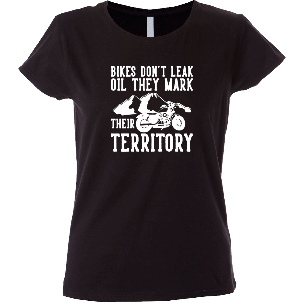 Camiseta mujer de manga corta con cinta de refuerzo en el cuello con diseño de bikes don´t leak