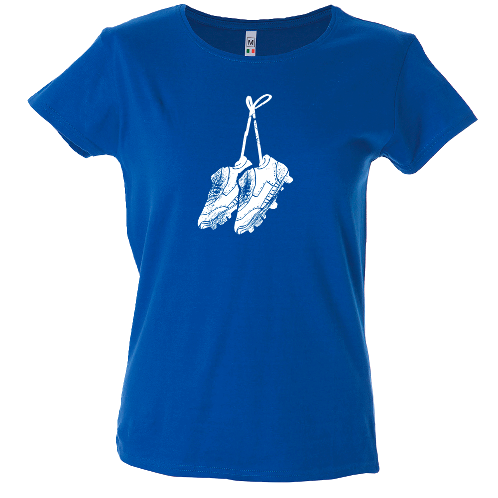 Camiseta mujer de manga corta con cinta de refuerzo en el cuello con diseño de botines