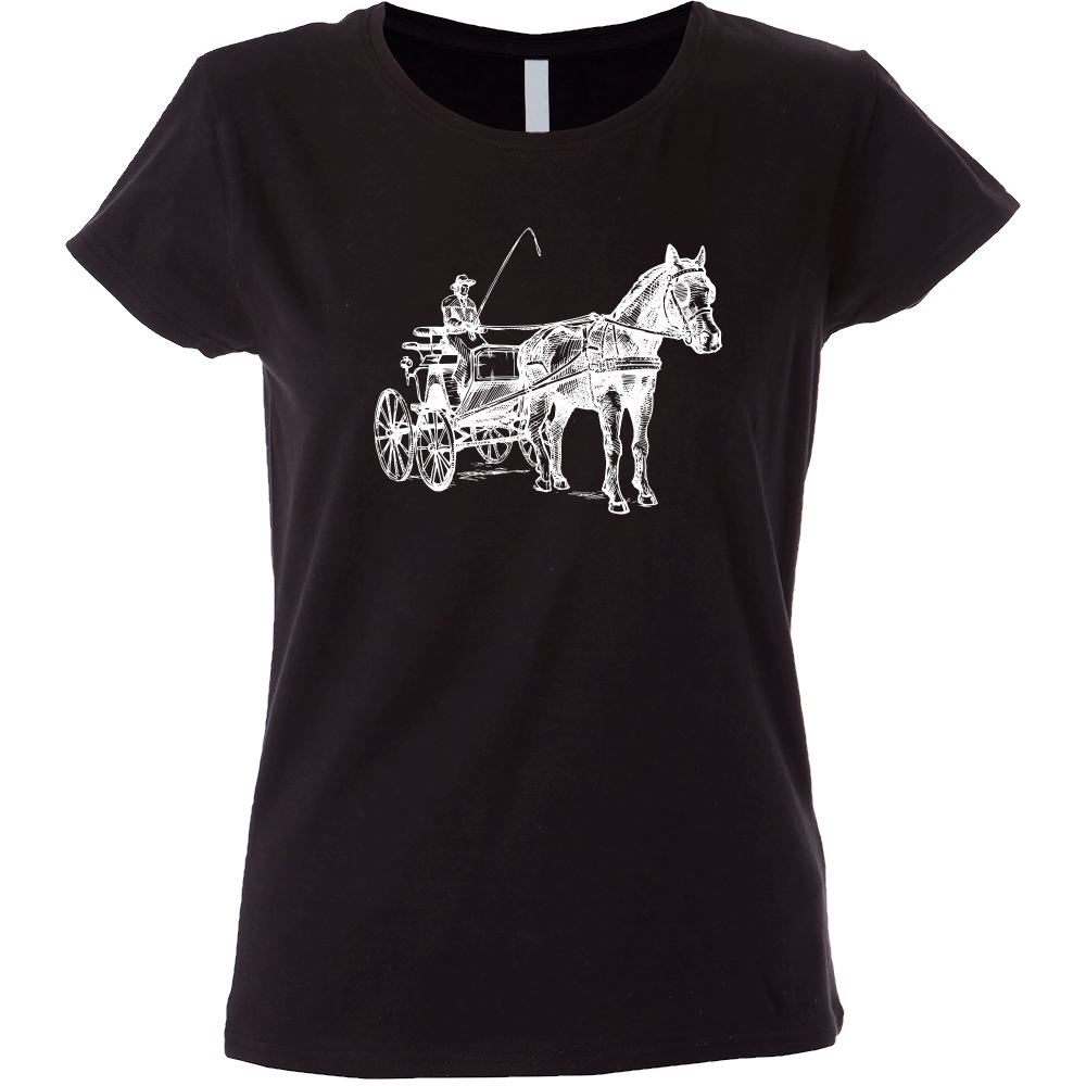 Camiseta mujer de manga corta con cinta de refuerzo en el cuello con diseño de carroza.