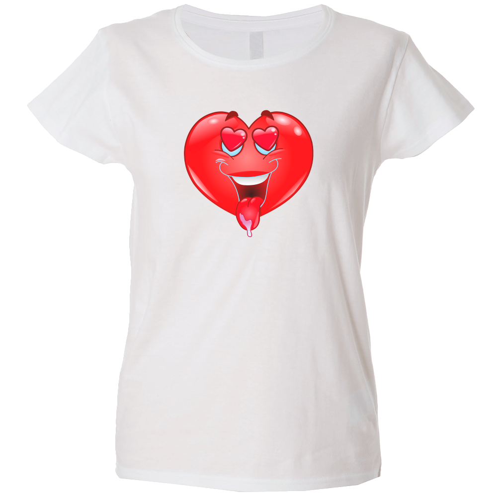 Camiseta mujer de manga corta con cinta de refuerzo en el cuello con diseño de corazón enamorado.