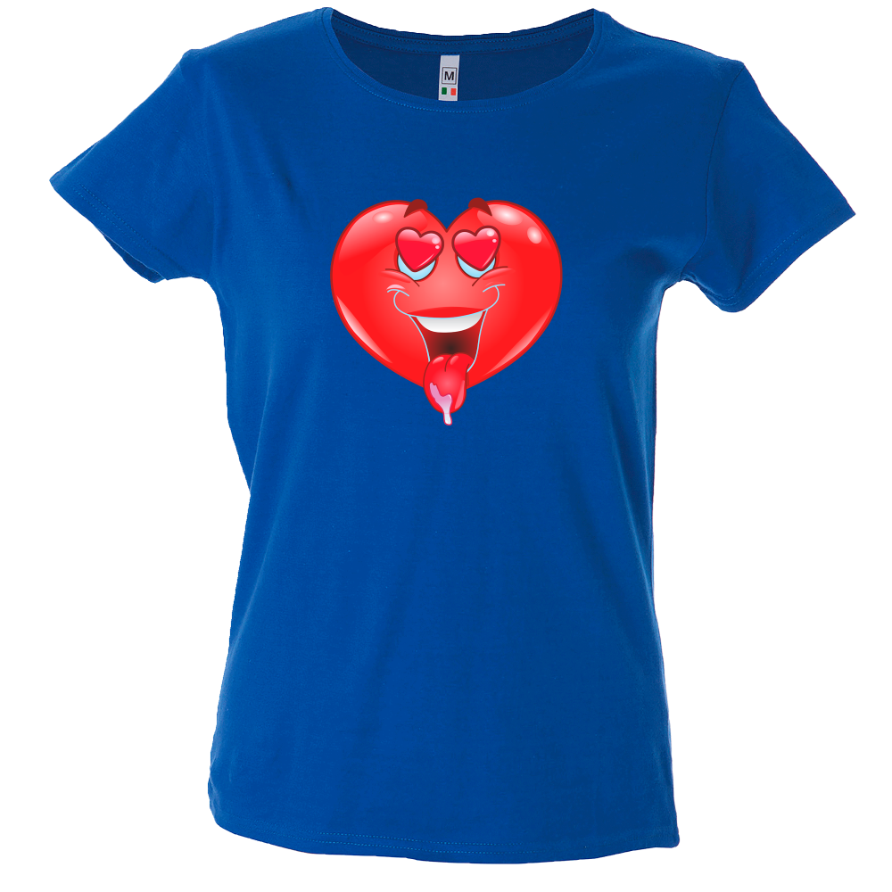 Camiseta mujer de manga corta con cinta de refuerzo en el cuello con diseño de corazón enamorado.