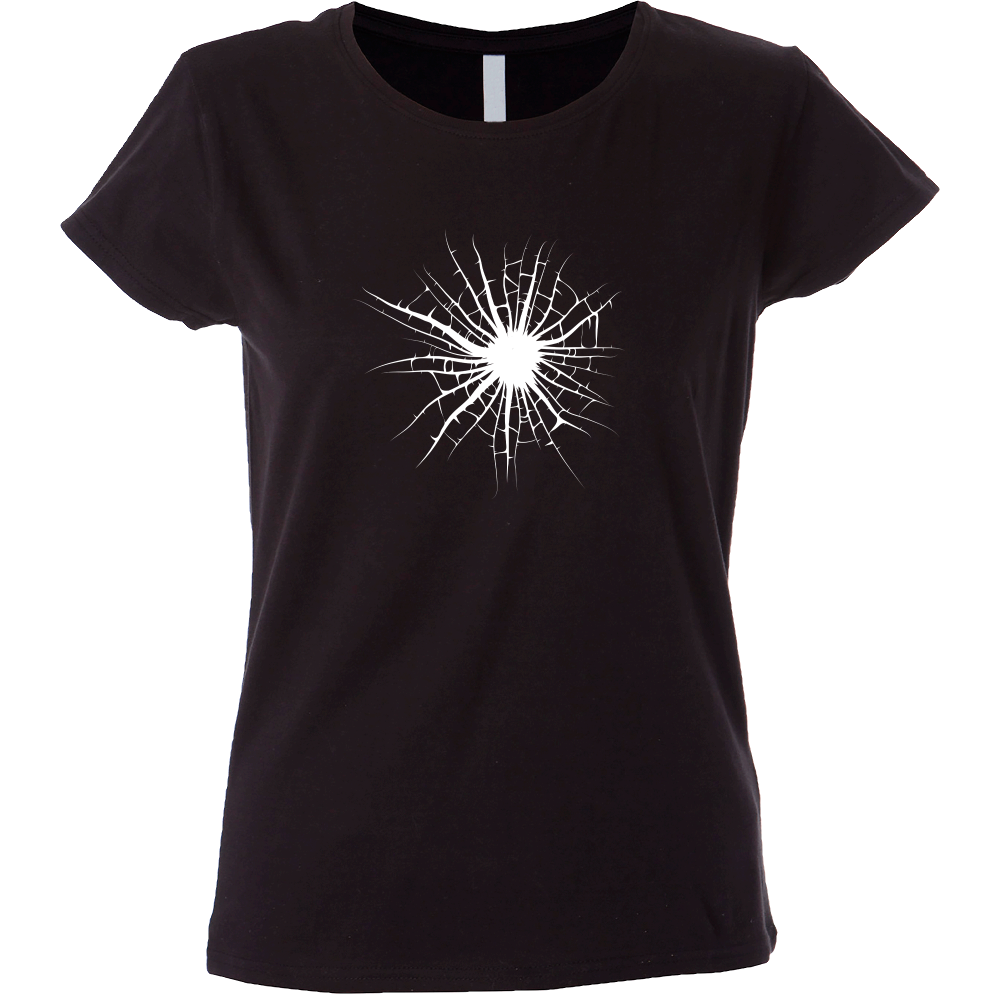 Camiseta mujer de manga corta con cinta de refuerzo en el cuello con diseño de cristal roto
