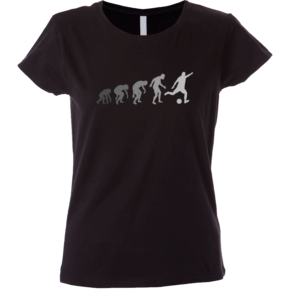 Camiseta mujer de manga corta con cinta de refuerzo en el cuello con diseño de evolución fútbol