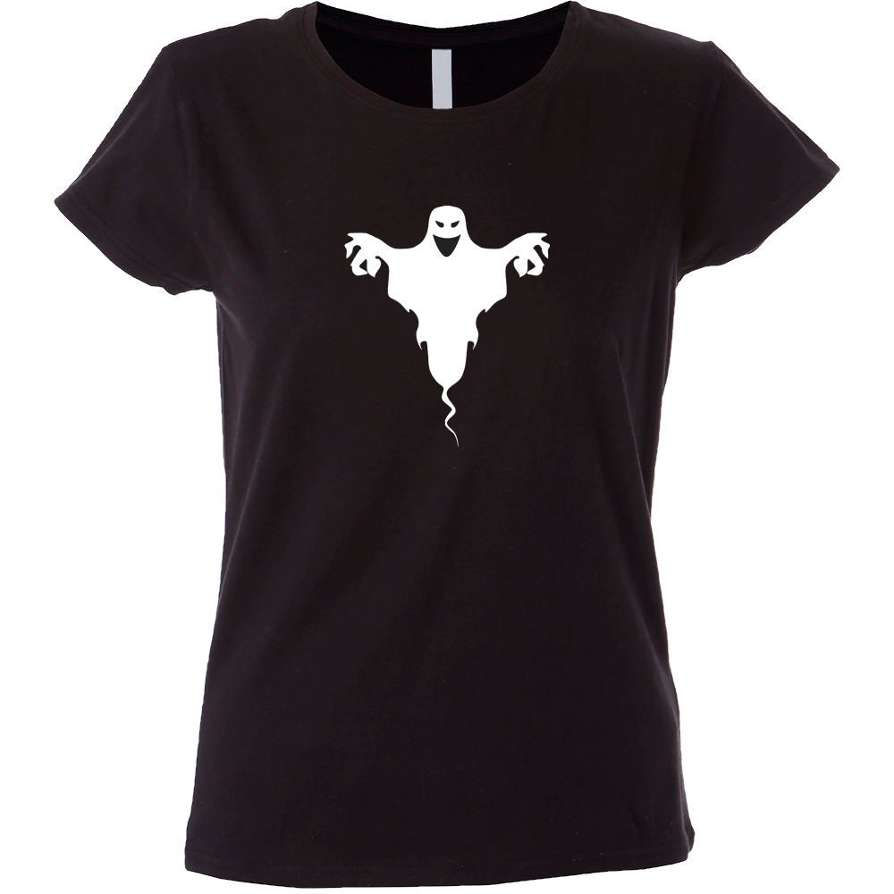 Camiseta mujer de manga corta con cinta de refuerzo en el cuello con diseño de fantasma