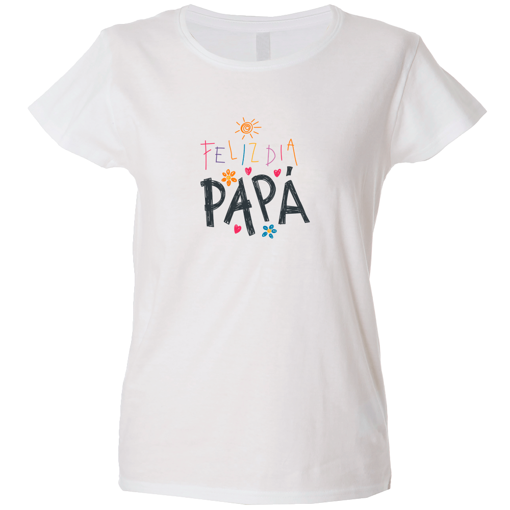 Camiseta mujer de manga corta con cinta de refuerzo en el cuello con diseño de feliz día papa