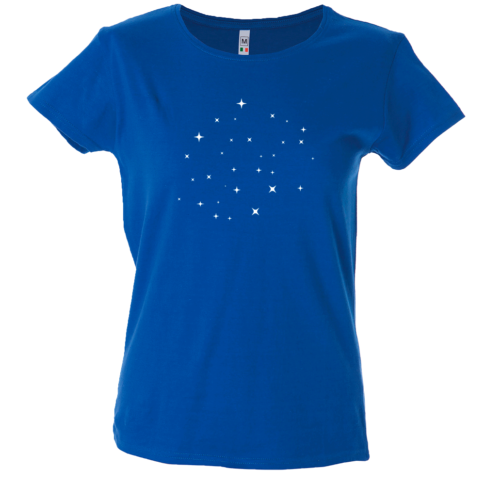 Camiseta mujer de manga corta con cinta de refuerzo en el cuello con diseño de firmamento