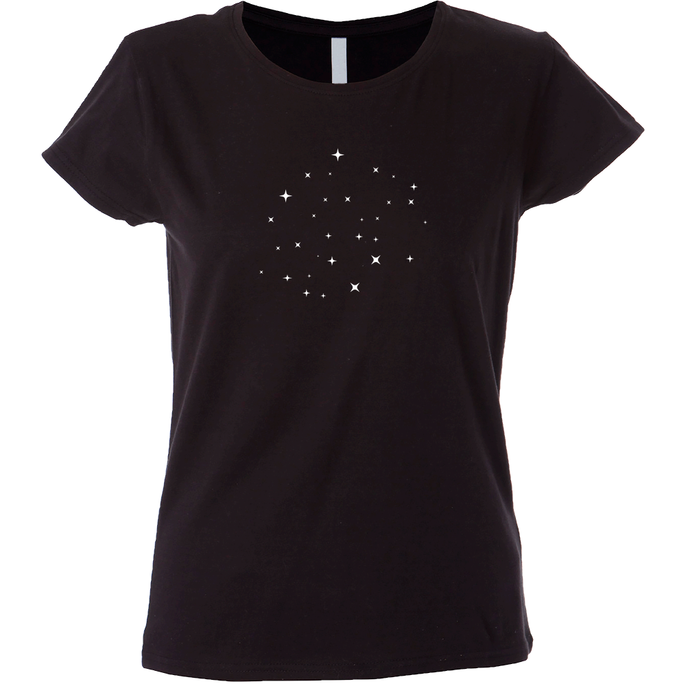 Camiseta mujer de manga corta con cinta de refuerzo en el cuello con diseño de firmamento