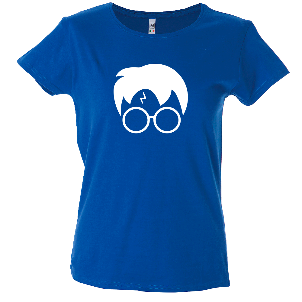 Camiseta mujer de manga corta con cinta de refuerzo en el cuello con diseño de harry potter