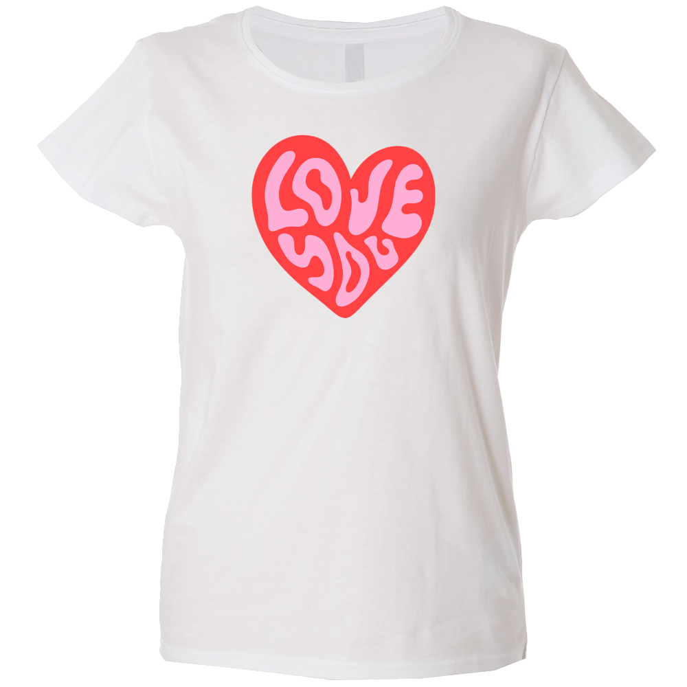 Camiseta mujer de manga corta con cinta de refuerzo en el cuello con diseño delove you corazón