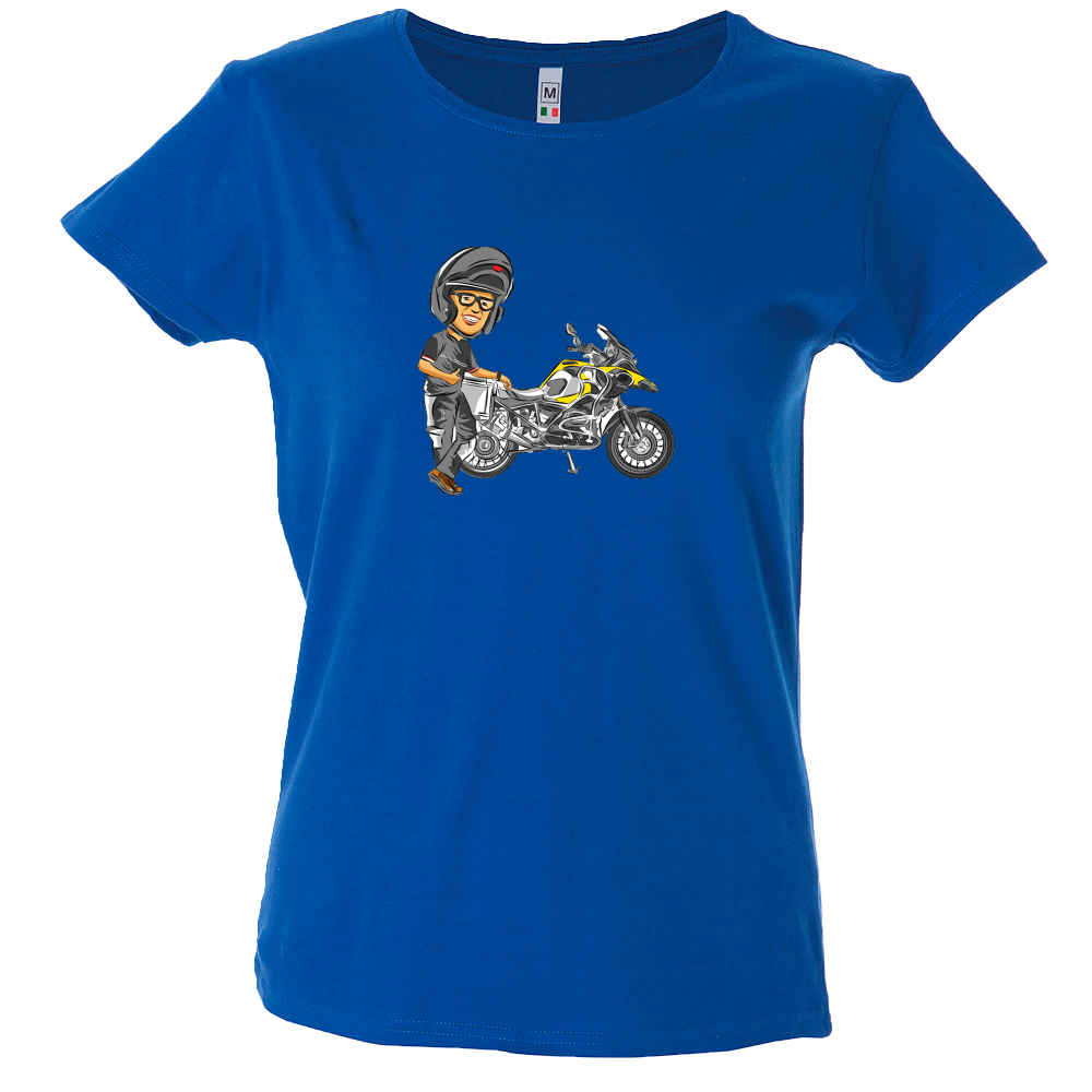 Camiseta mujer de manga corta con cinta de refuerzo en el cuello con diseño de kawasaki amarilla