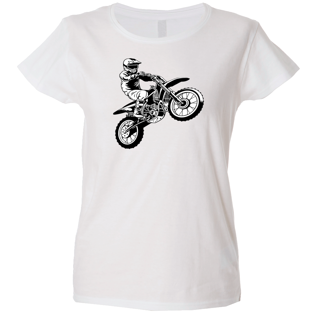 Camiseta mujer de manga corta con cinta de refuerzo en el cuello con diseño de moto cross