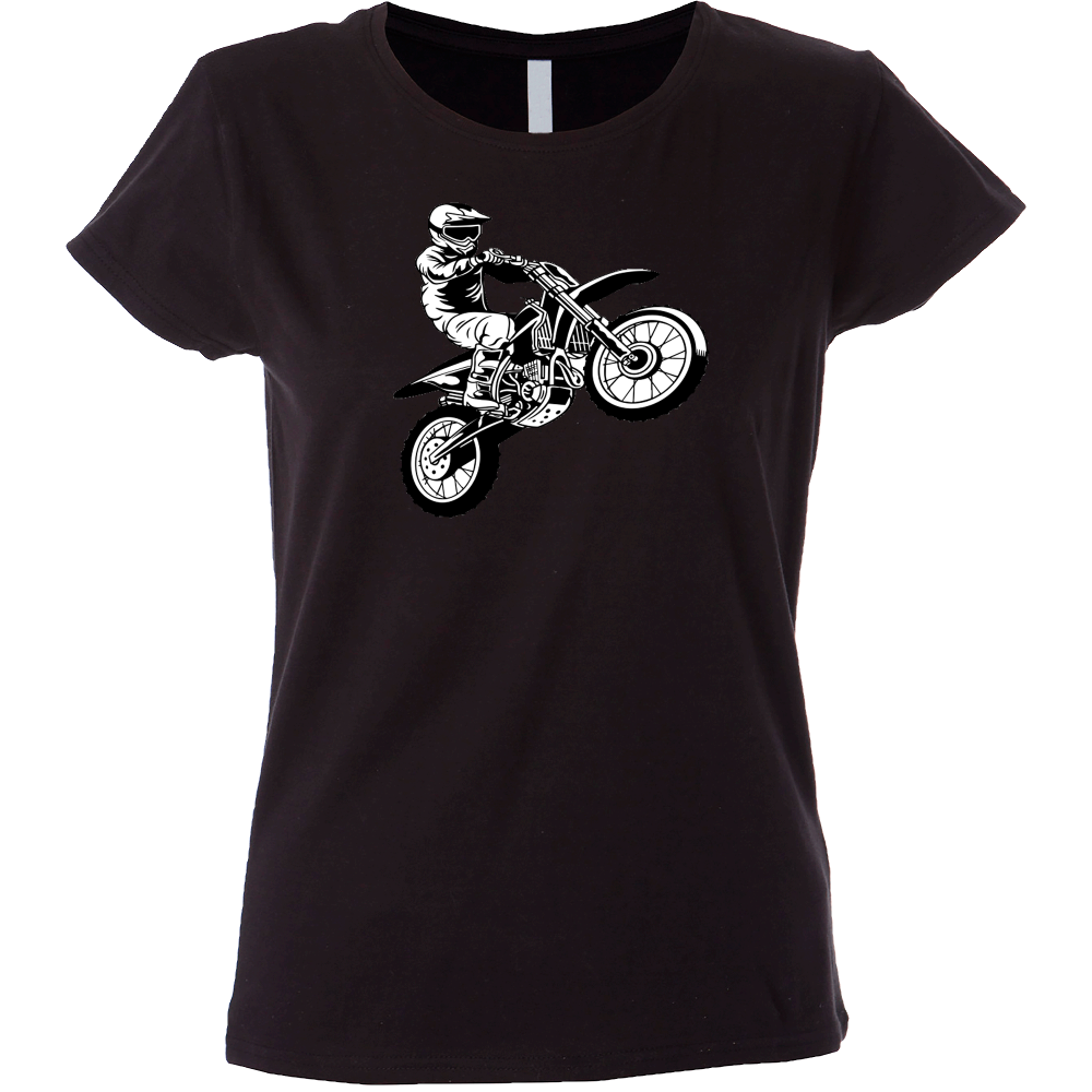 Camiseta mujer de manga corta con cinta de refuerzo en el cuello con diseño de moto cross