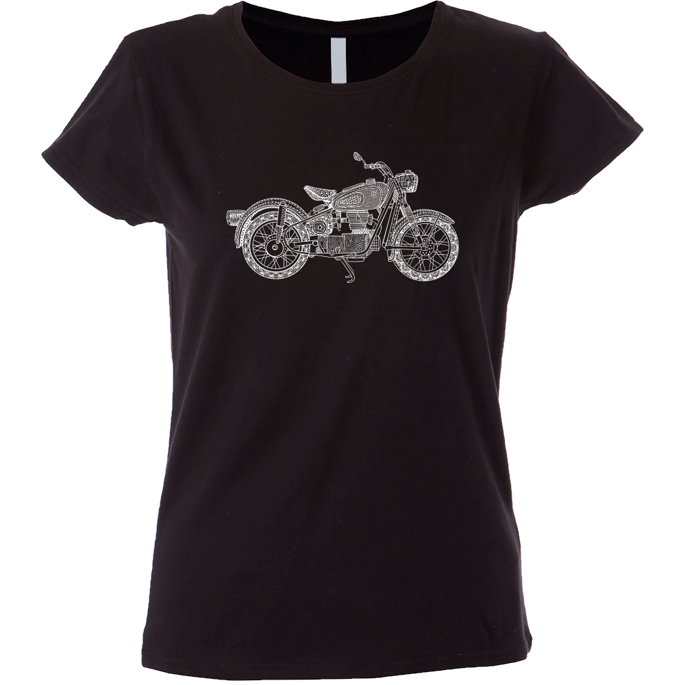 Camiseta mujer de manga corta con cinta de refuerzo en el cuello con diseño de moto mandala