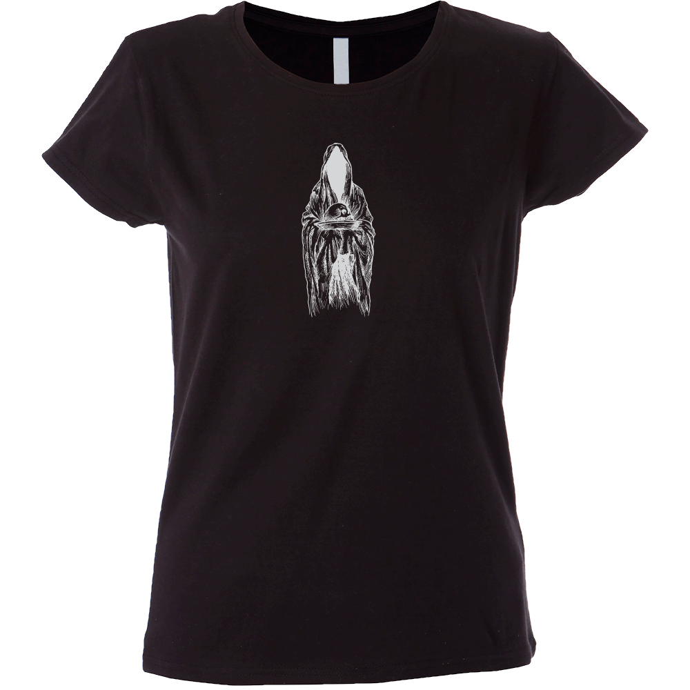 Camiseta mujer de manga corta con cinta de refuerzo en el cuello con diseño de muerte calavera
