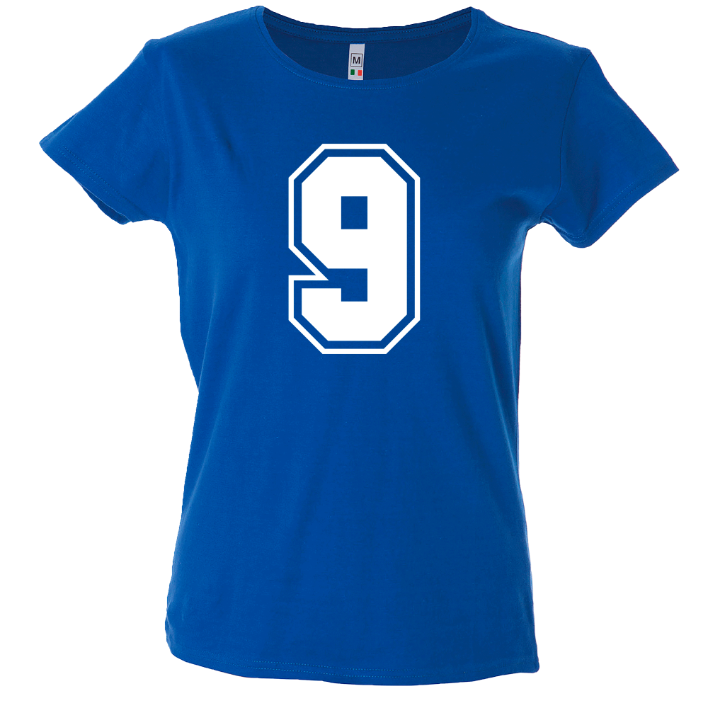 Camiseta mujer de manga corta con cinta de refuerzo en el cuello con diseño de número 9