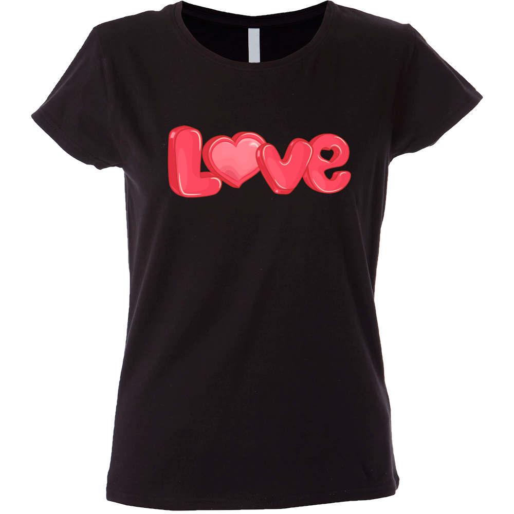 Camiseta mujer de manga corta con cinta de refuerzo en el cuello con diseño de love 2