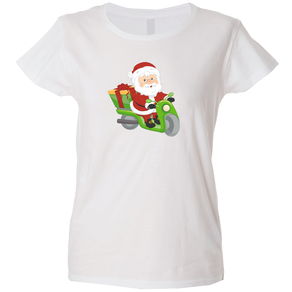 Camiseta mujer de manga corta con cinta de refuerzo en el cuello con diseño de noel moto